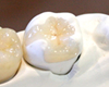 金合金で作られています。金合金はしなやかで歯との適合性もよく、天然歯に近い硬さで噛み合う歯を 痛めませんし、歯茎との境目も黒くなりません。 噛む力の強く目立たない上の奥歯での使用に向いています。 |
